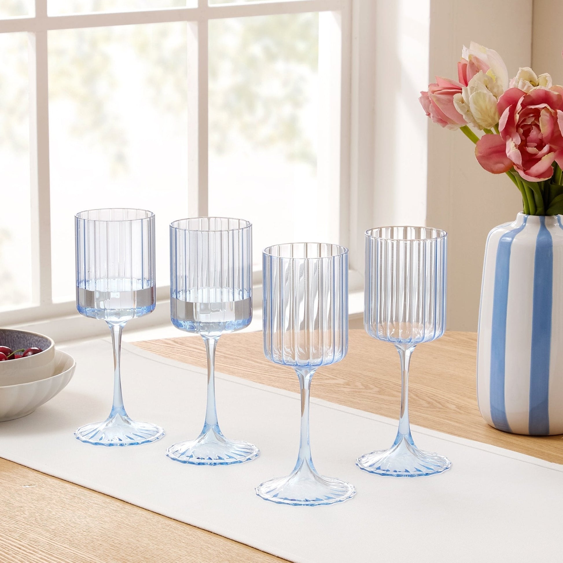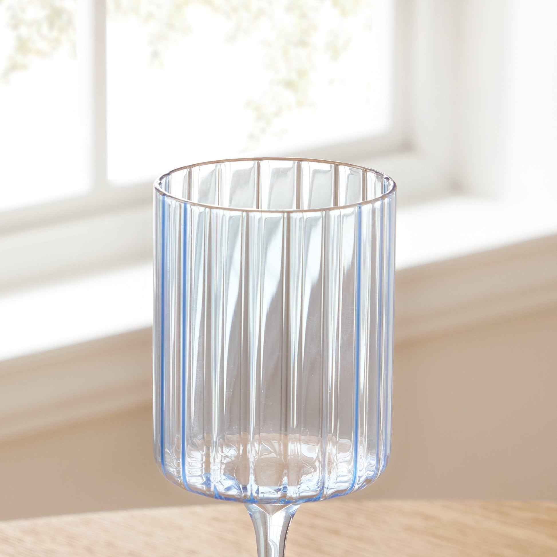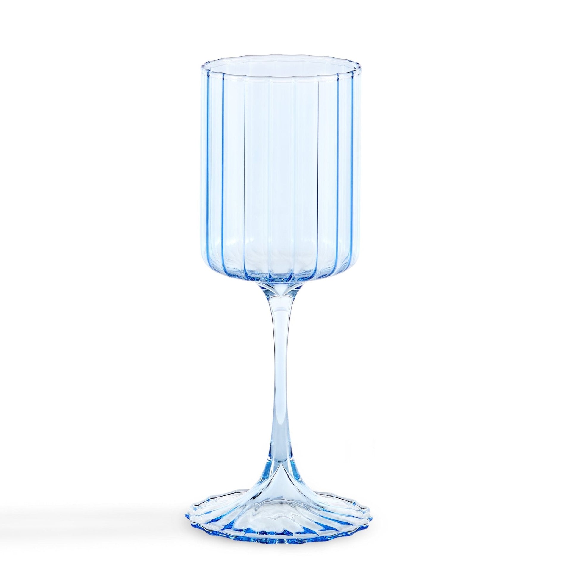 Lucinda Scalloped Edge Contrast Stem Wine Glasses - Set of 4 - Blue